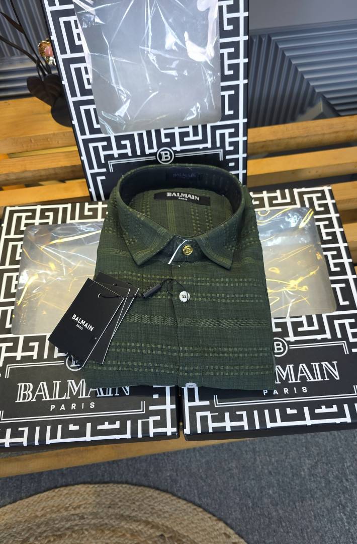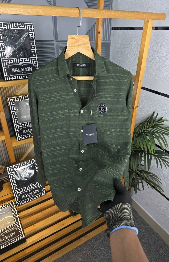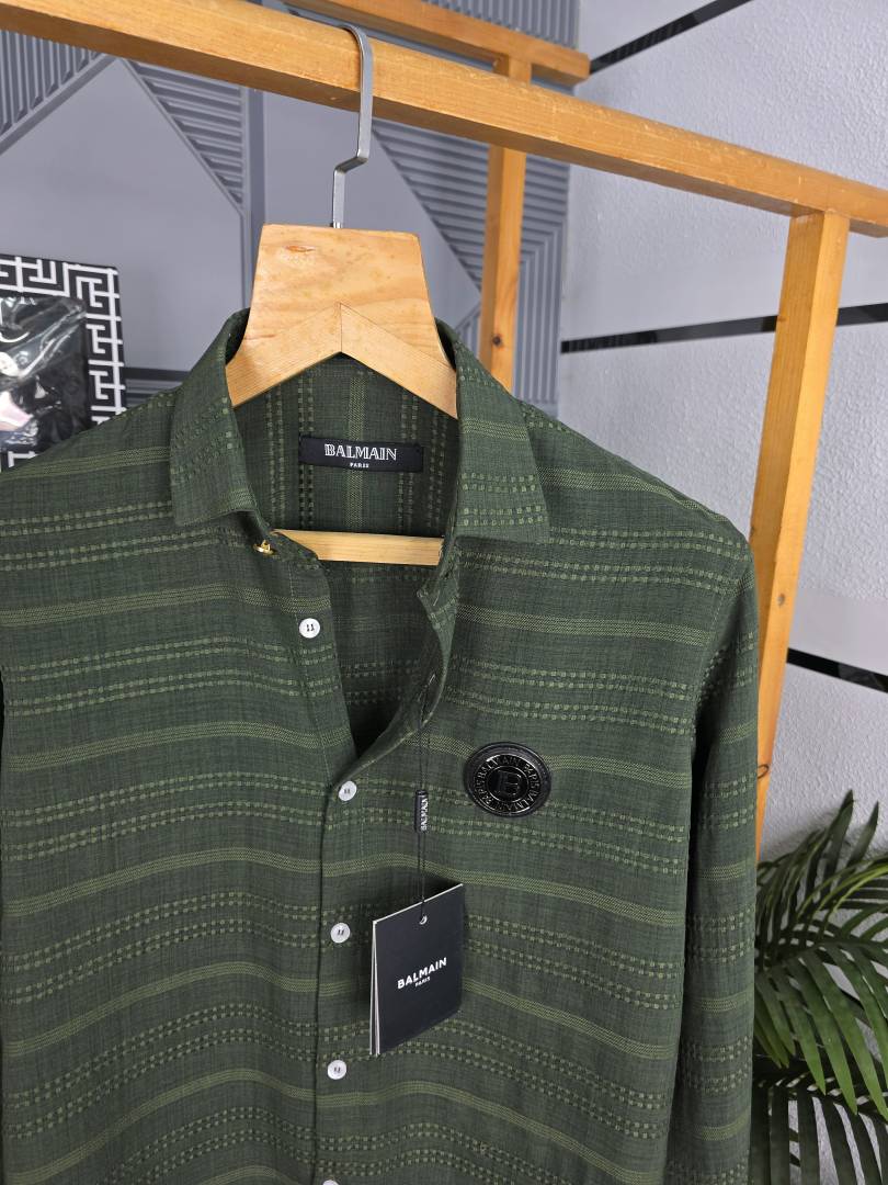 Lorro Piana Imported Korean Fabric Box Pack Full Sleeves Shirt Olive