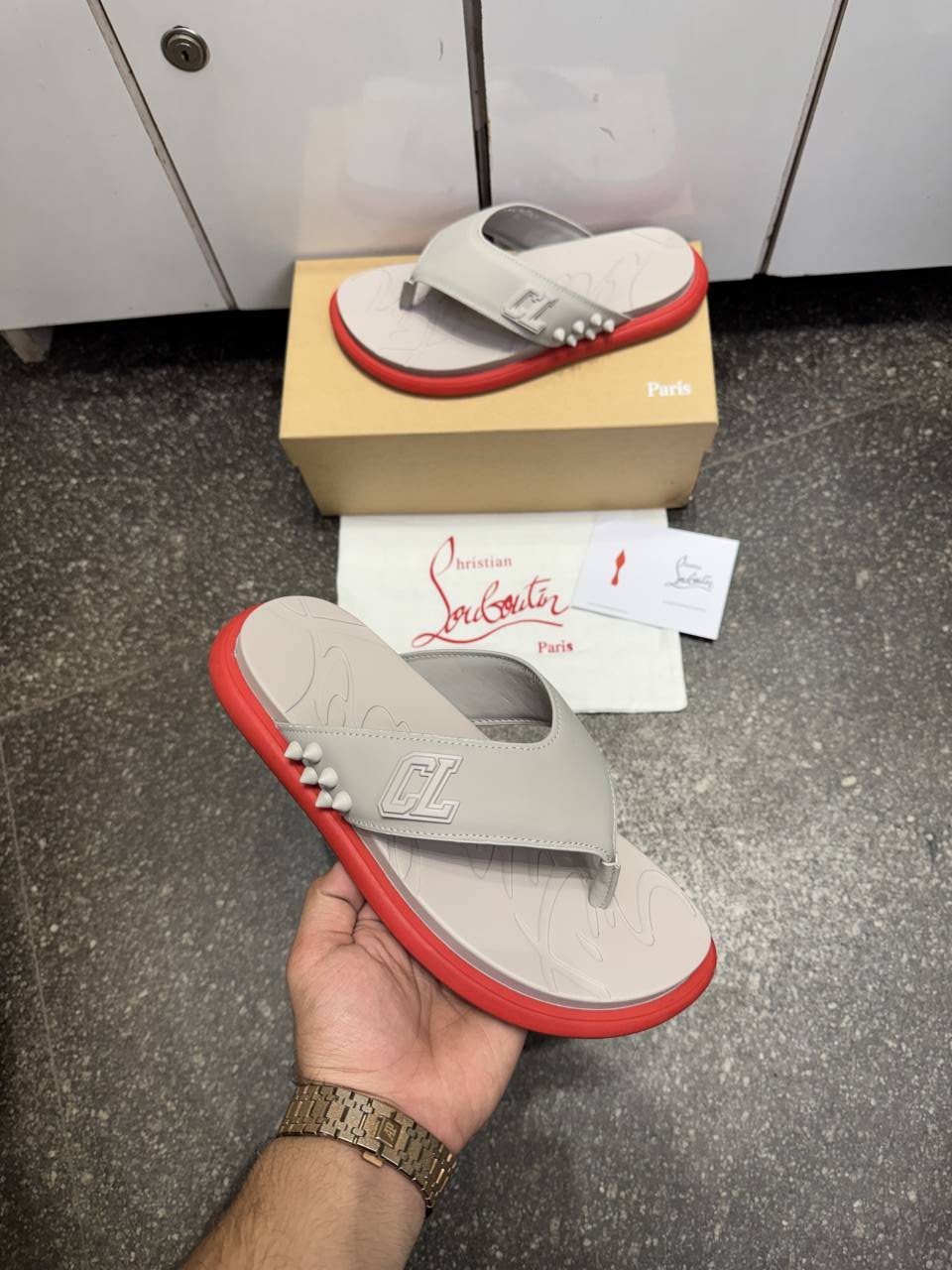 Christian Loubouti.n Super Rubber Spike Slipers Cream Premium