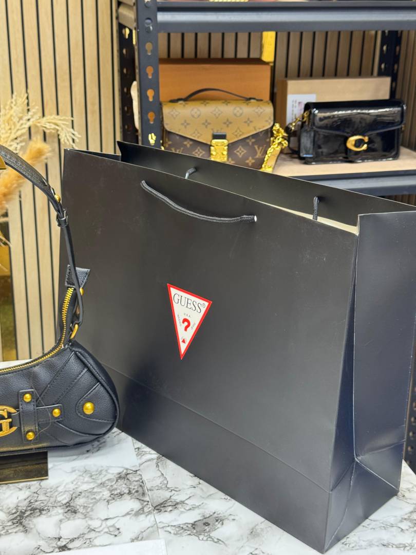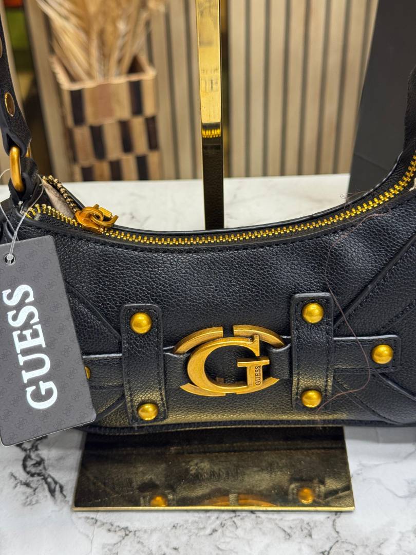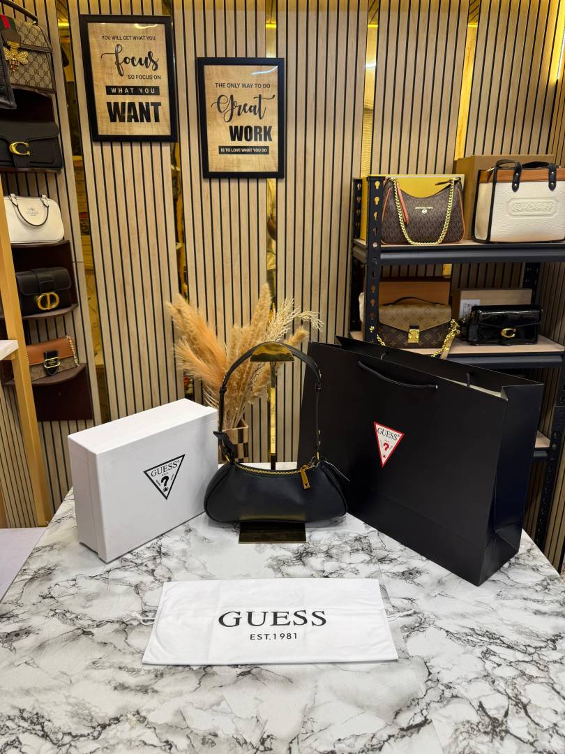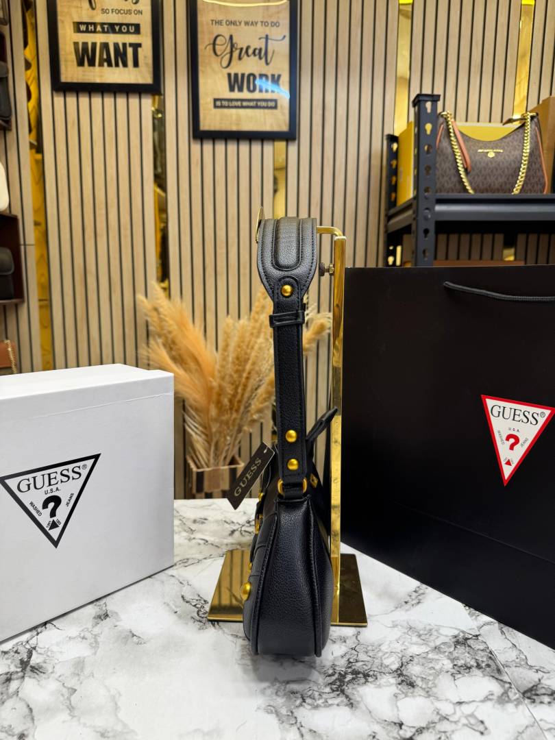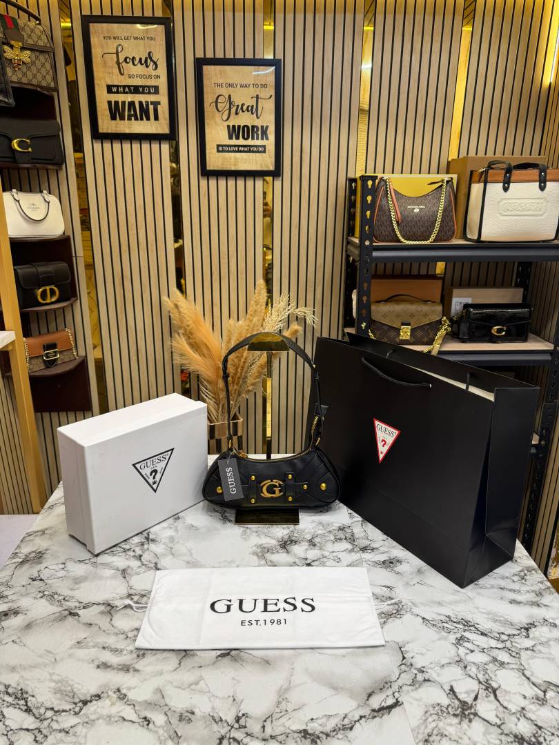Guess Mintha Top Zip Shoulder Bag With Box Dust Bag Including Carry Bag (Black)