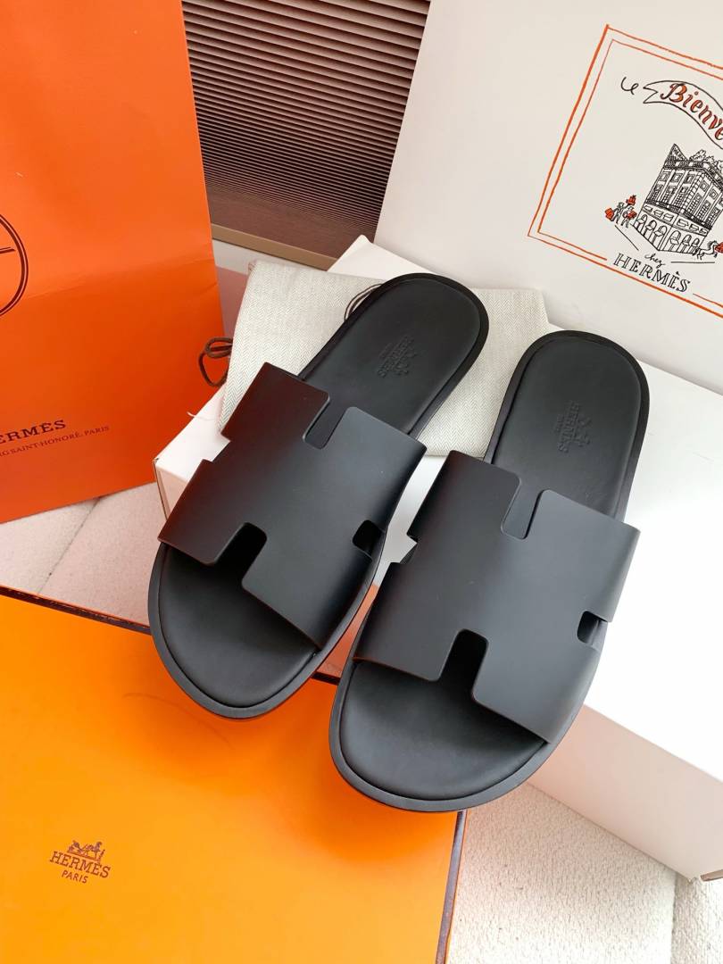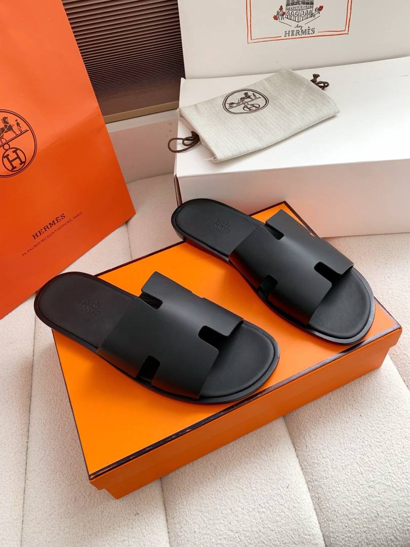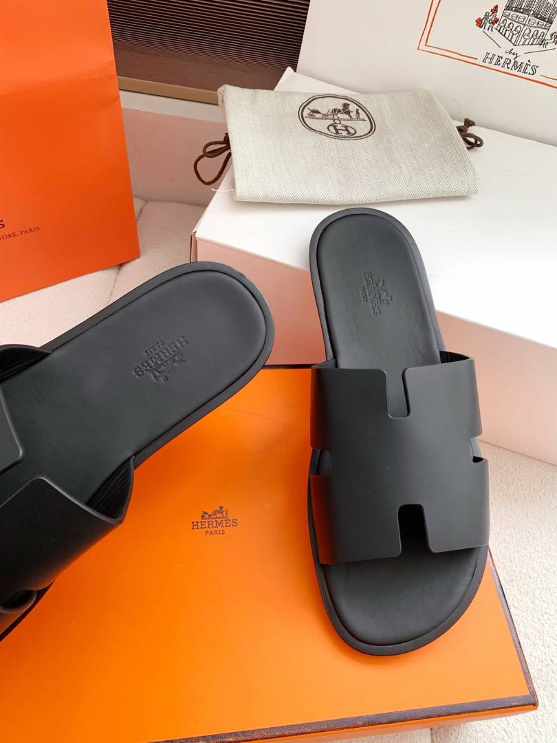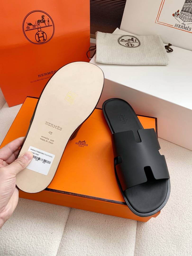 Herme.s Izmir Italian Calf Leather Premium Sandal Slide Black