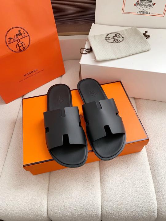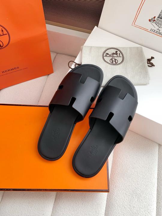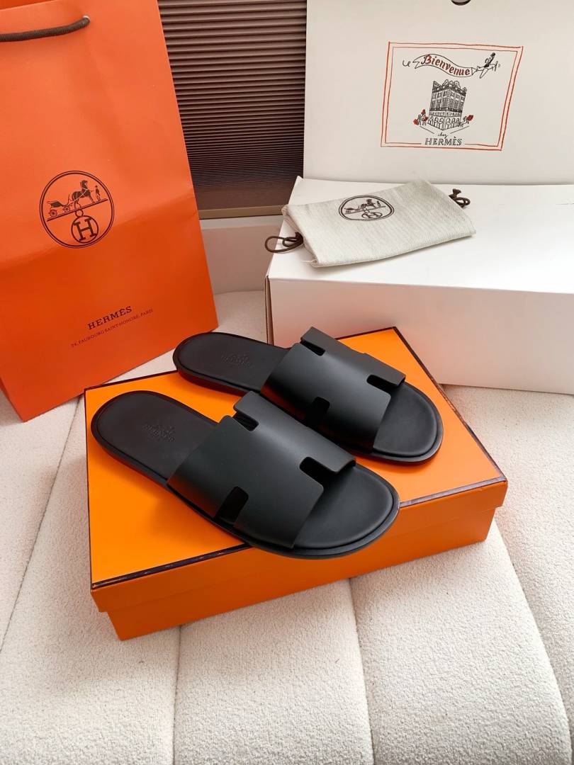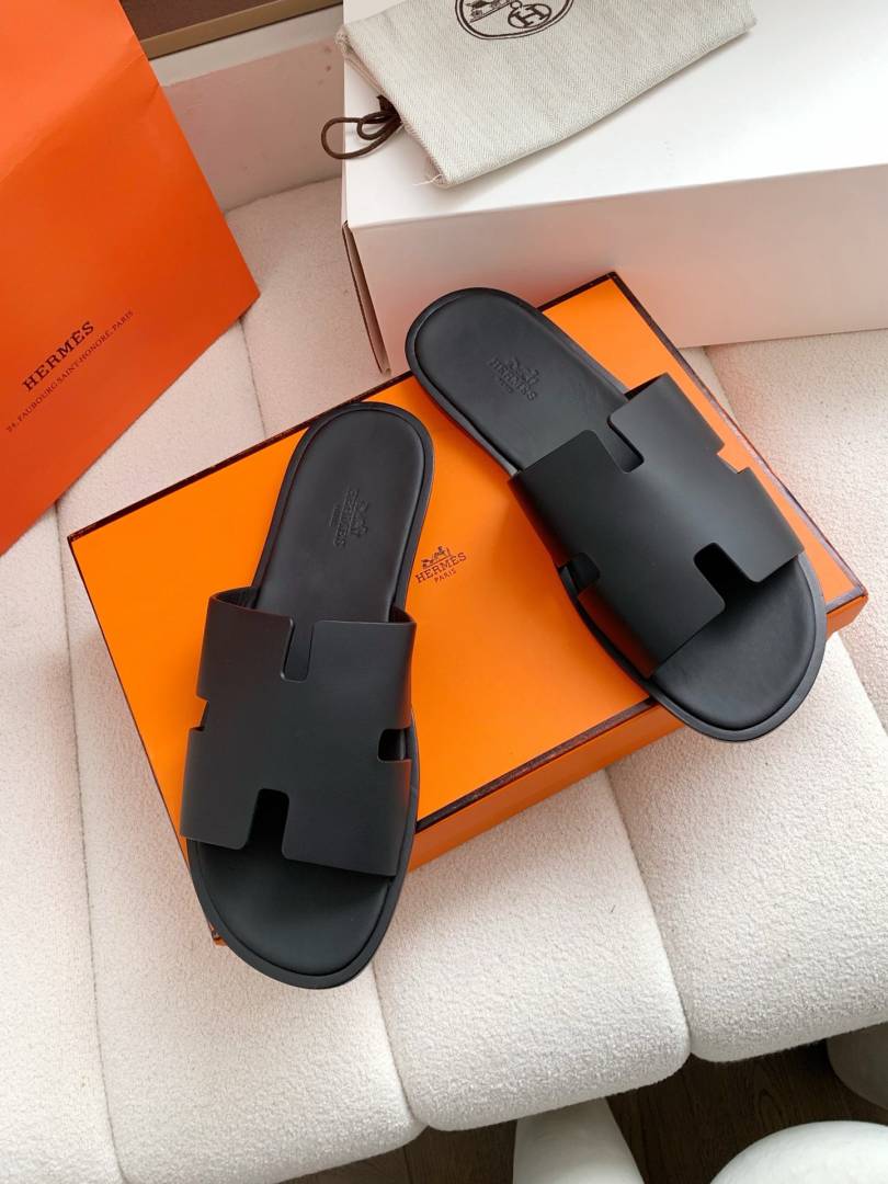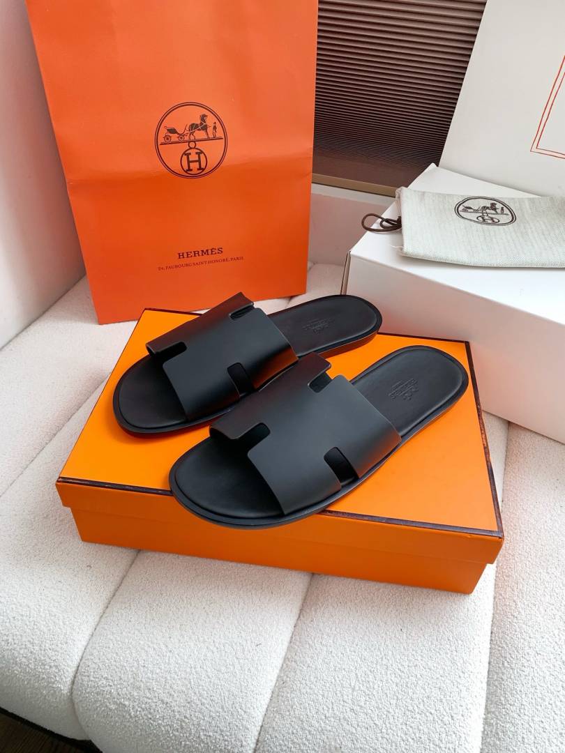 Herme.s Izmir Italian Calf Leather Premium Sandal Slide Black