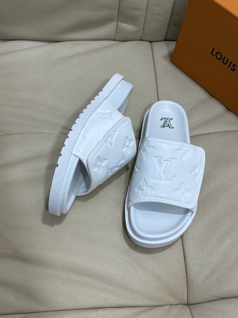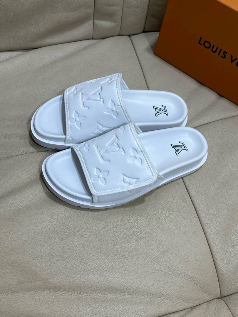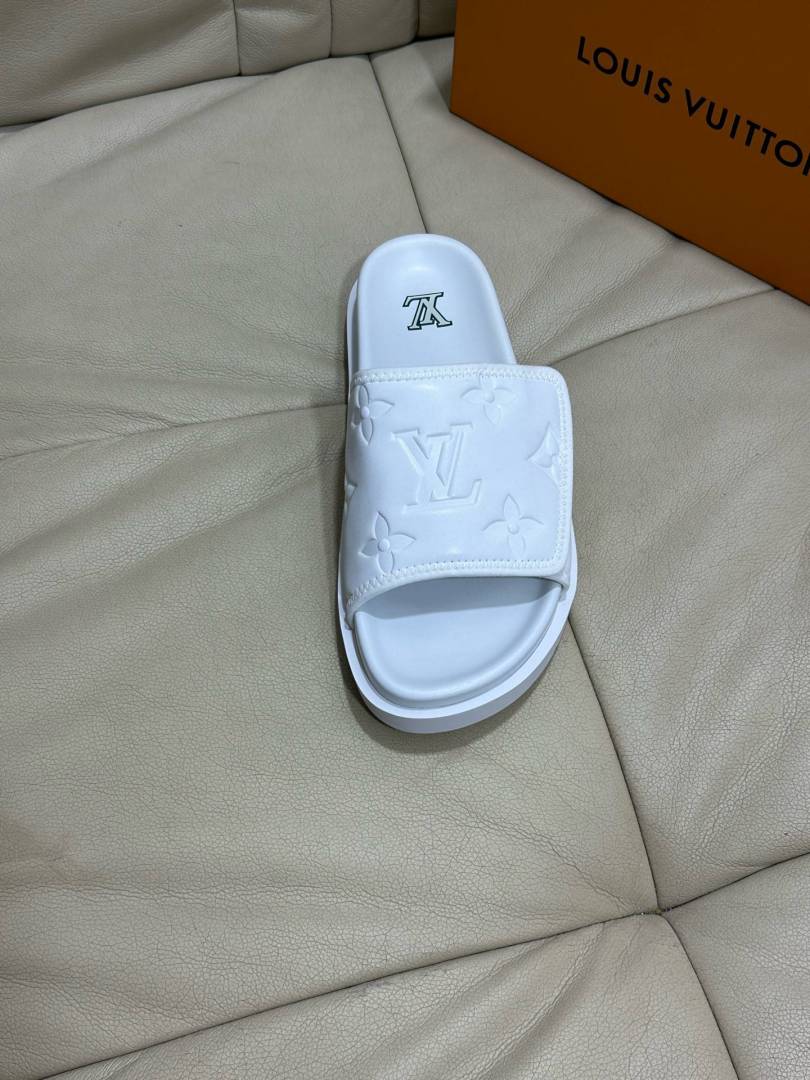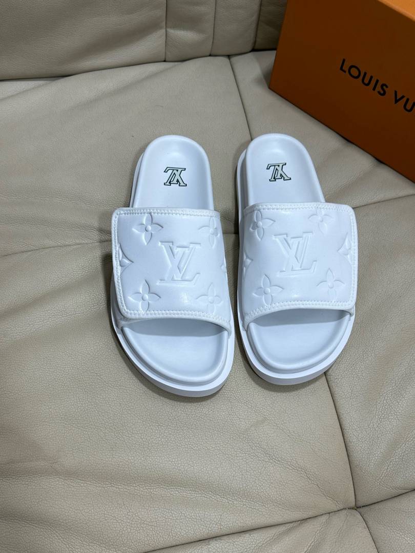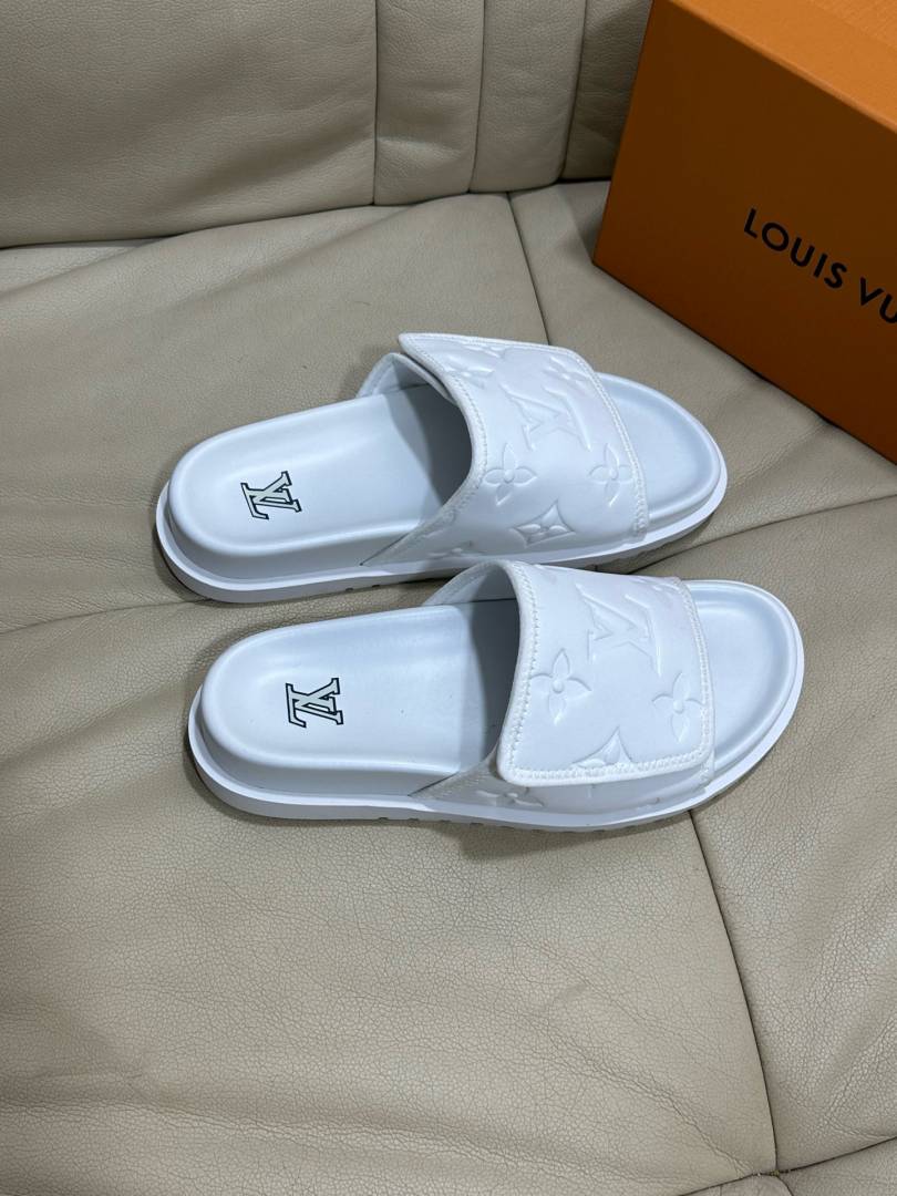 Loui.s Vuitton Lv Leather Miami Mules Wide Front Strap Logo Premium Slides
