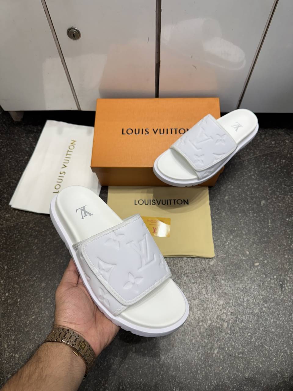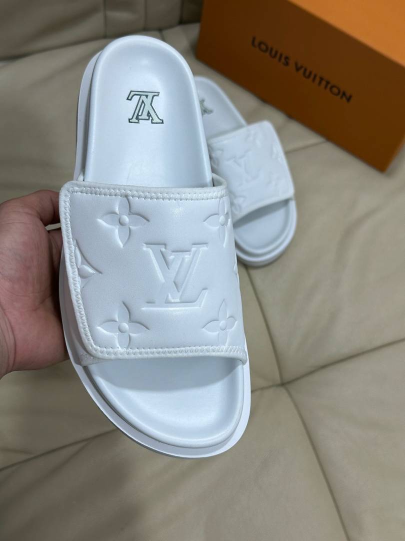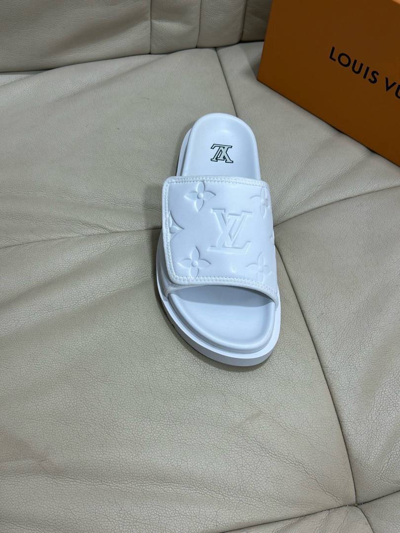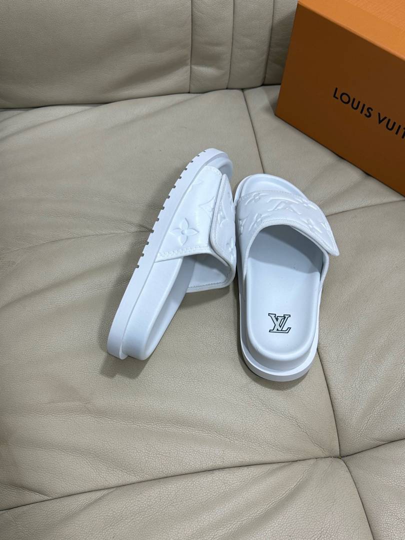 Loui.s Vuitton Lv Leather Miami Mules Wide Front Strap Logo Premium Slides
