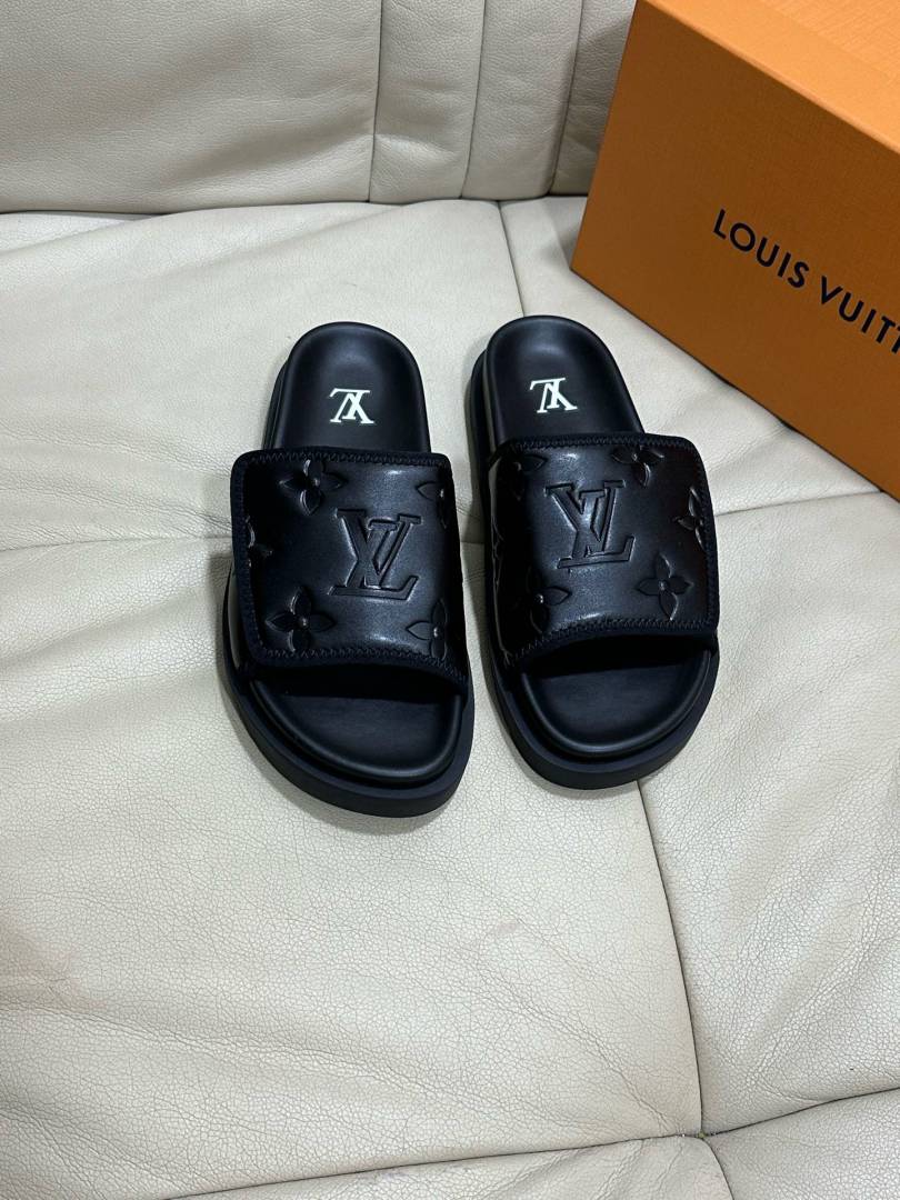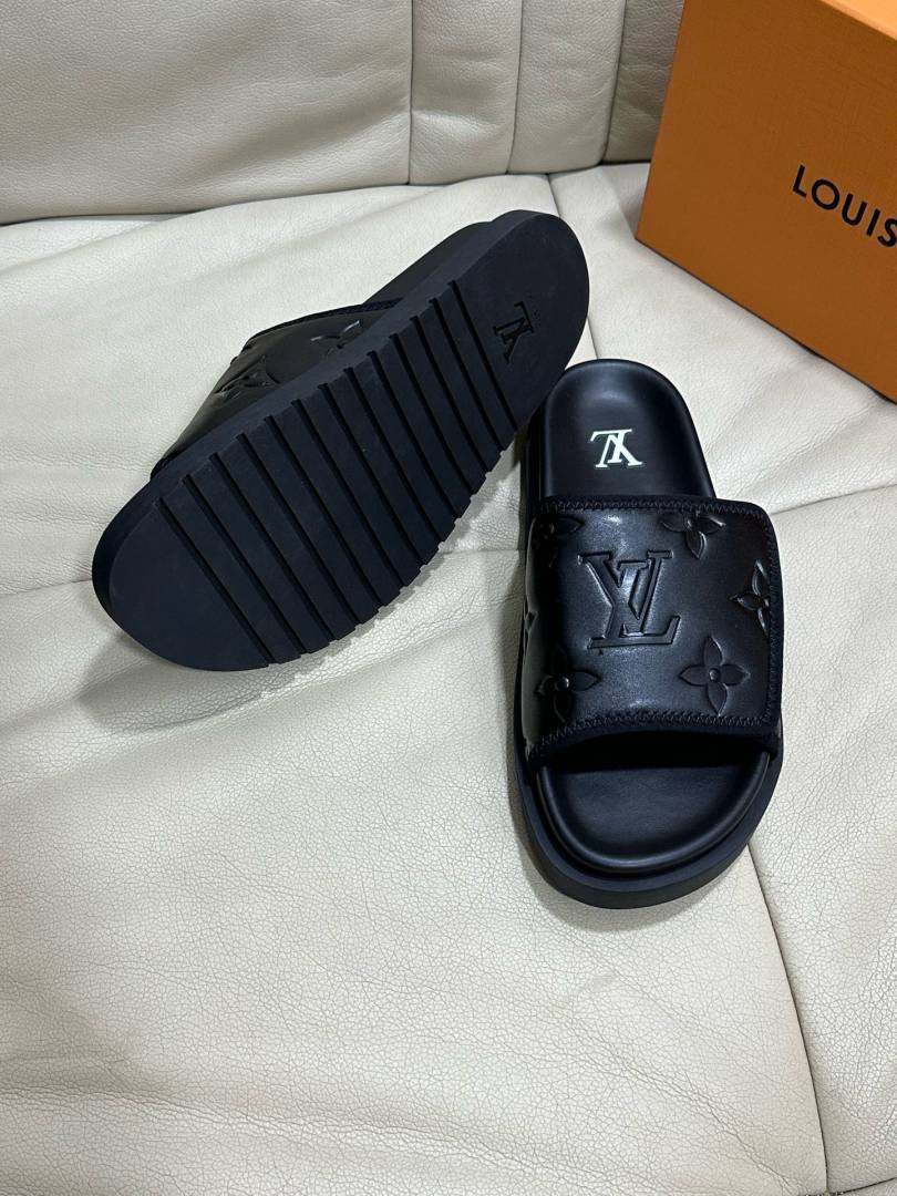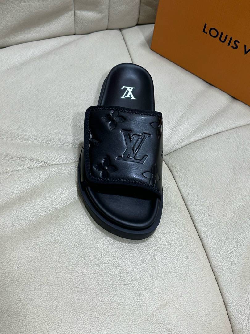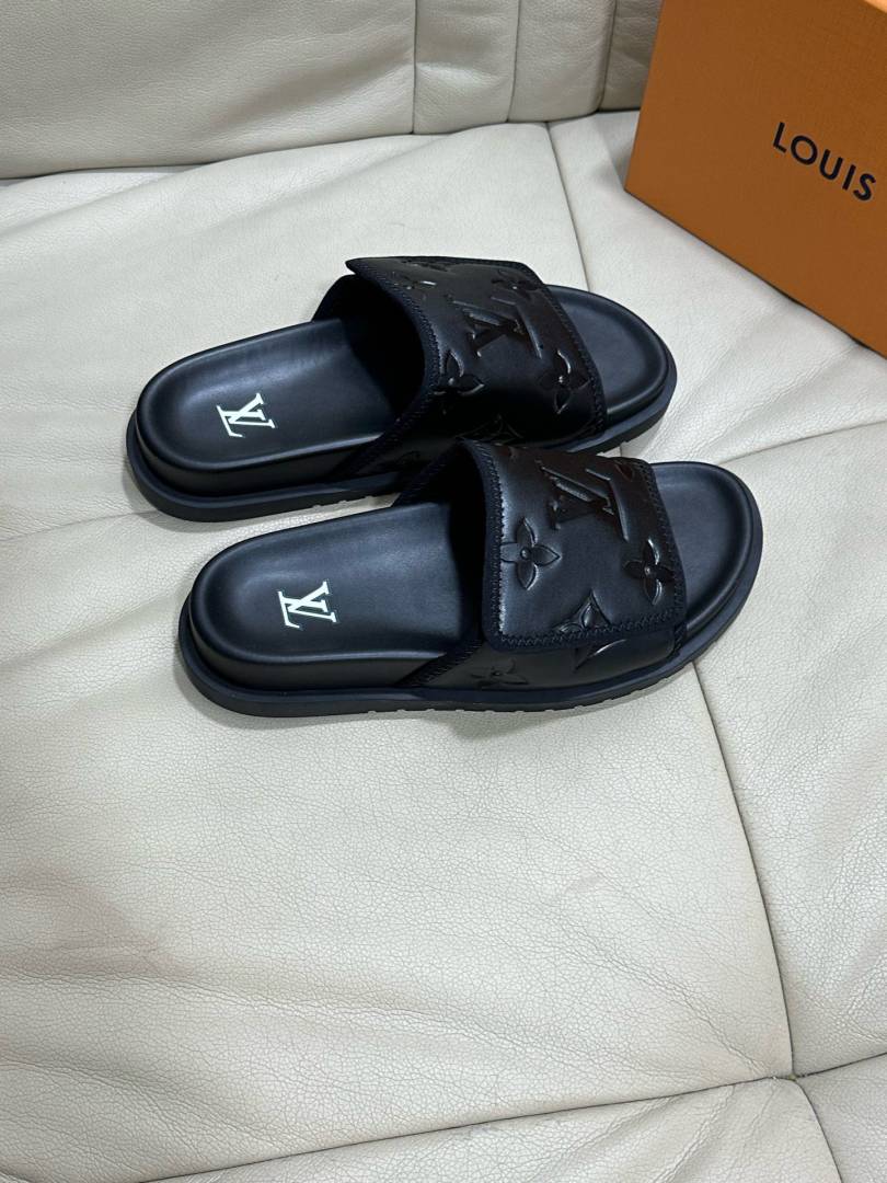 Loui.s Vuitton Lv Leather Miami Mules Wide Front Strap Logo Premium Slides