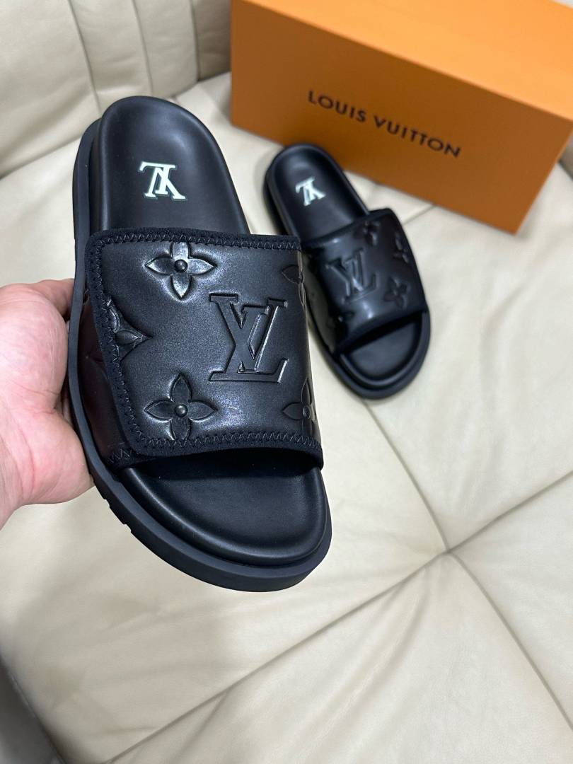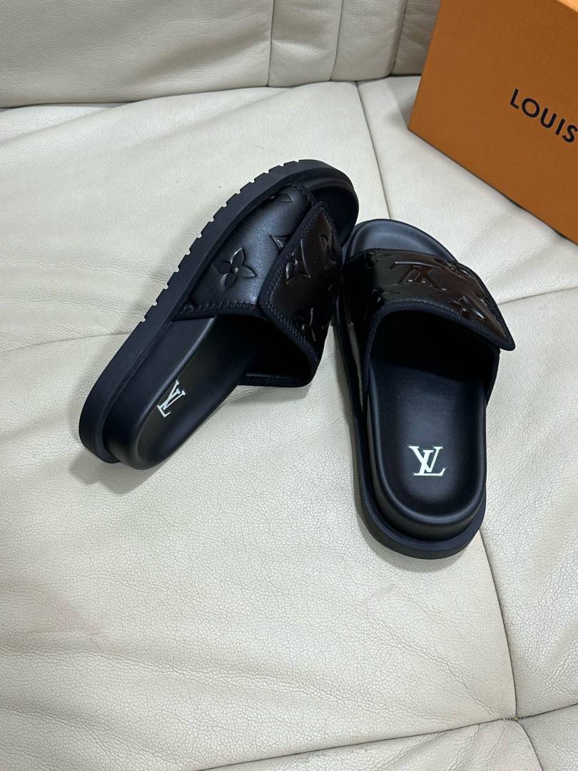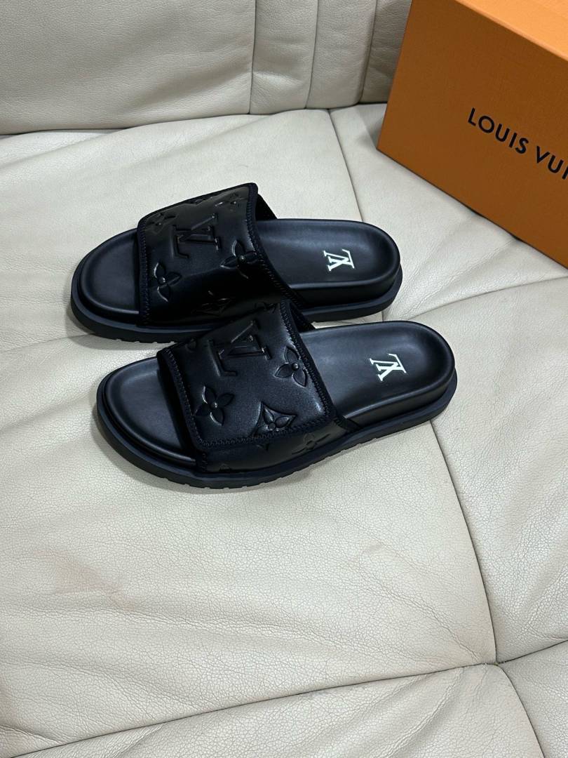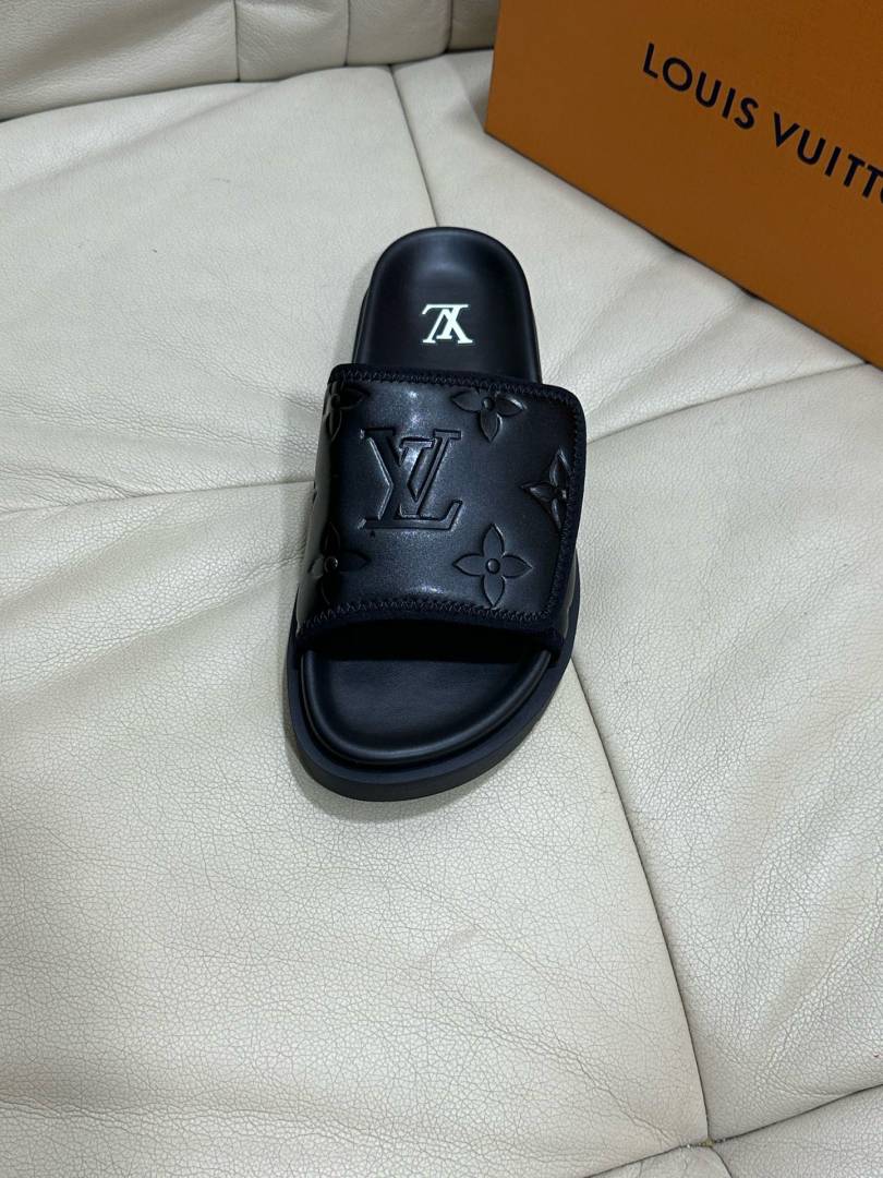 Loui.s Vuitton Lv Leather Miami Mules Wide Front Strap Logo Premium Slides