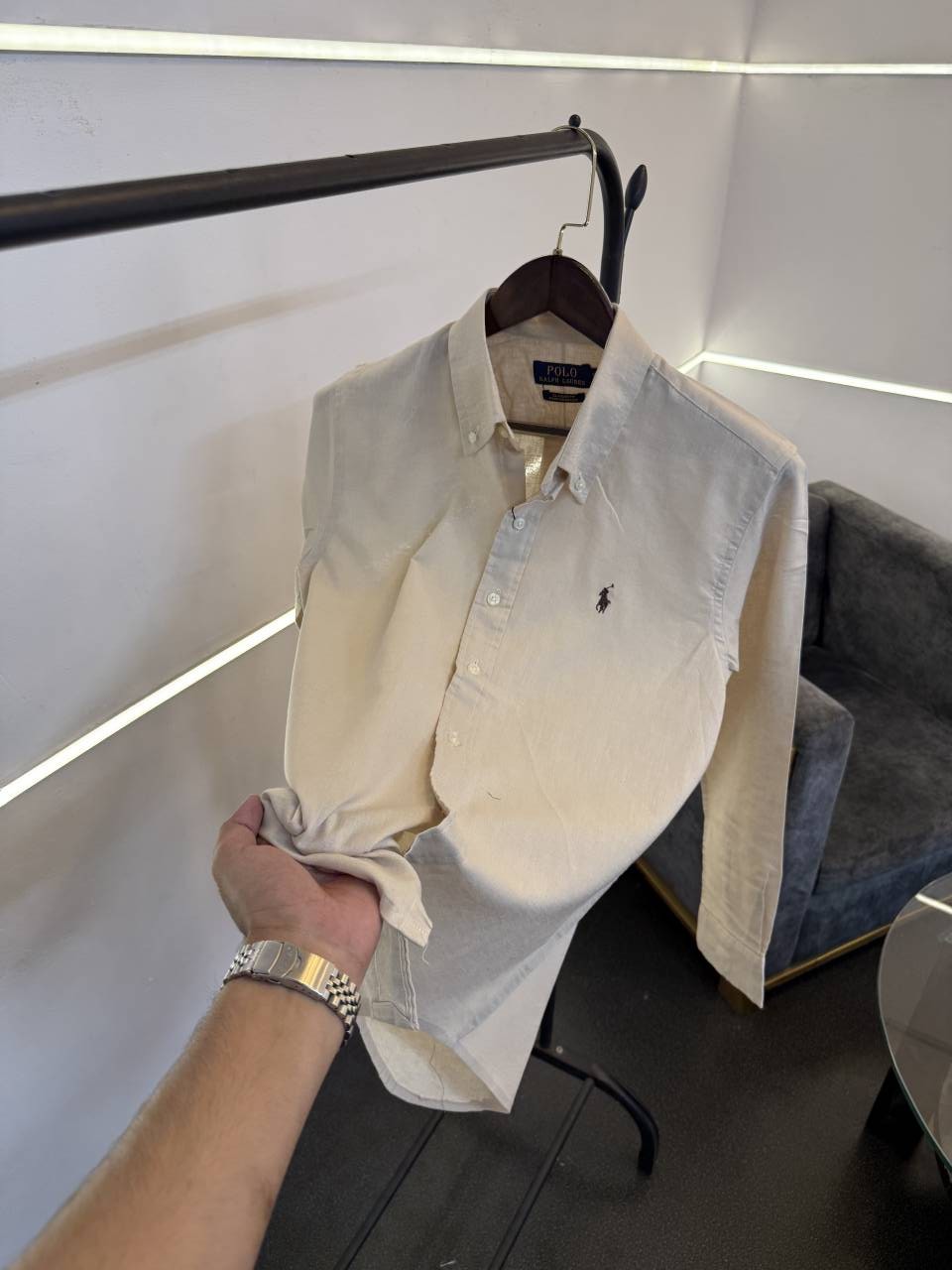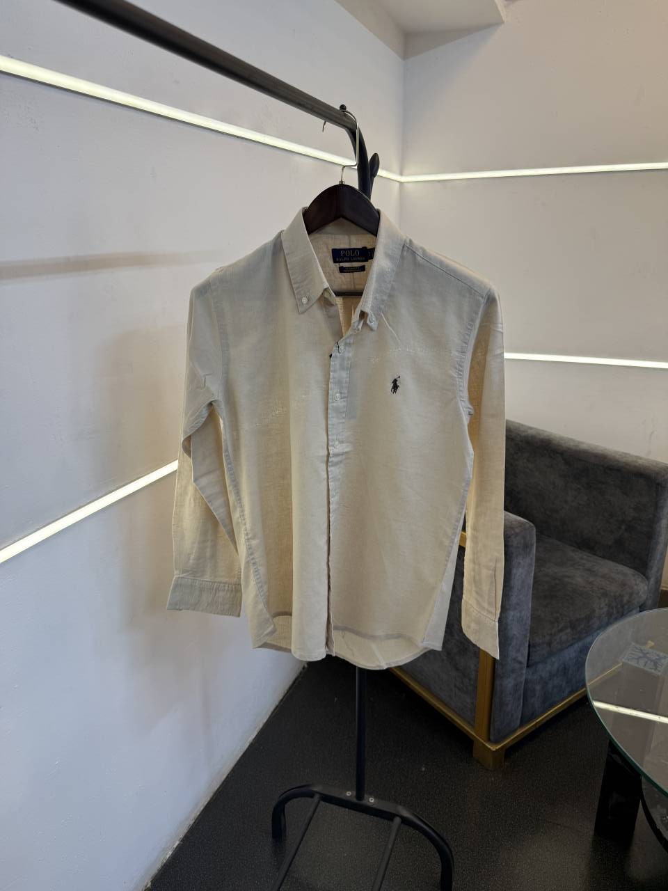 ? *Ralph lauren pure linen imported shirt with proper brand embroidery logo on chest now in stock*?