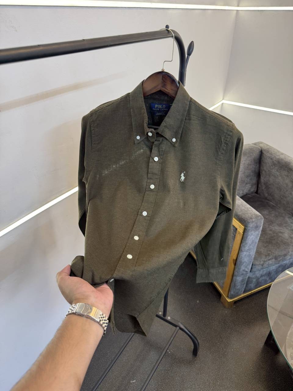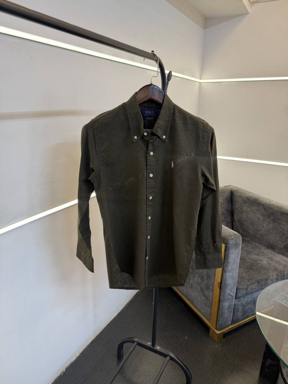 ? *Ralph lauren pure linen imported shirt with proper brand embroidery logo on chest now in stock*?