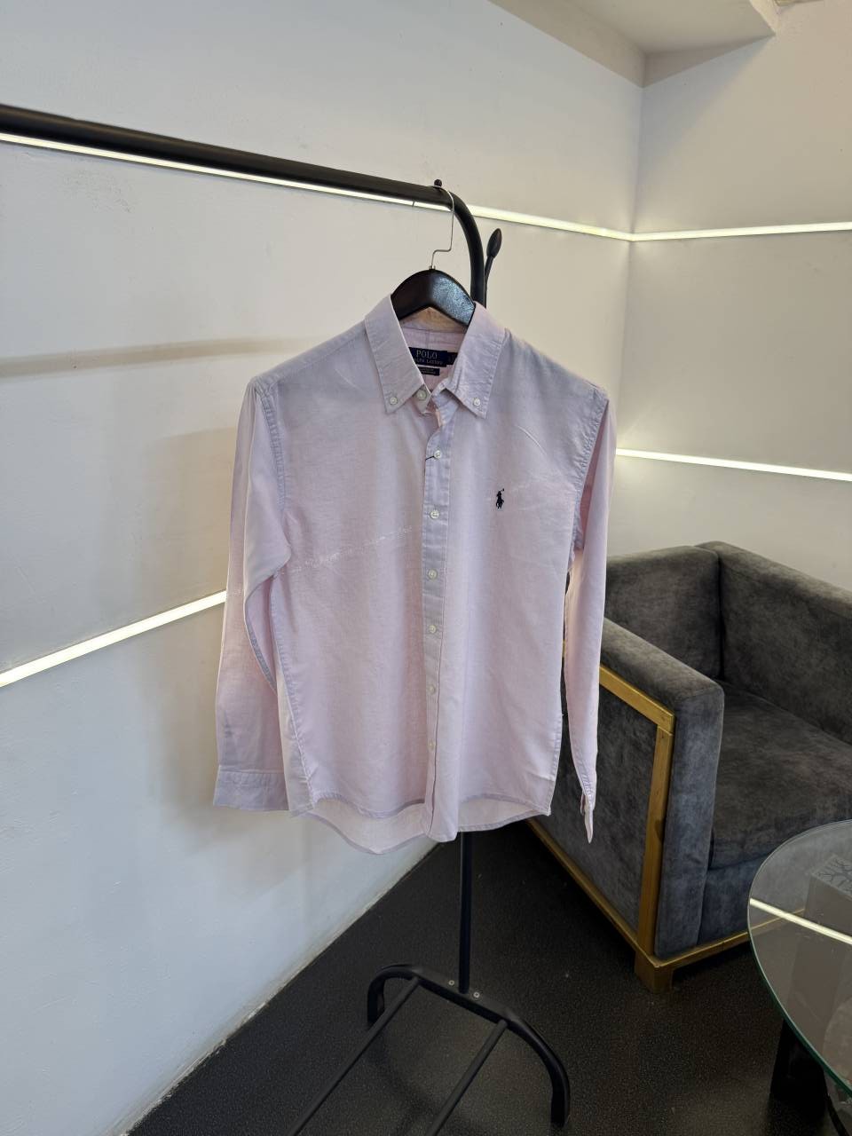 ? *Ralph lauren pure linen imported shirt with proper brand embroidery logo on chest now in stock*?